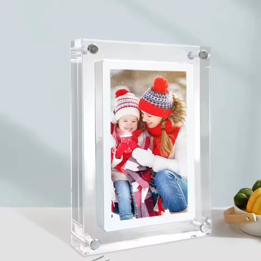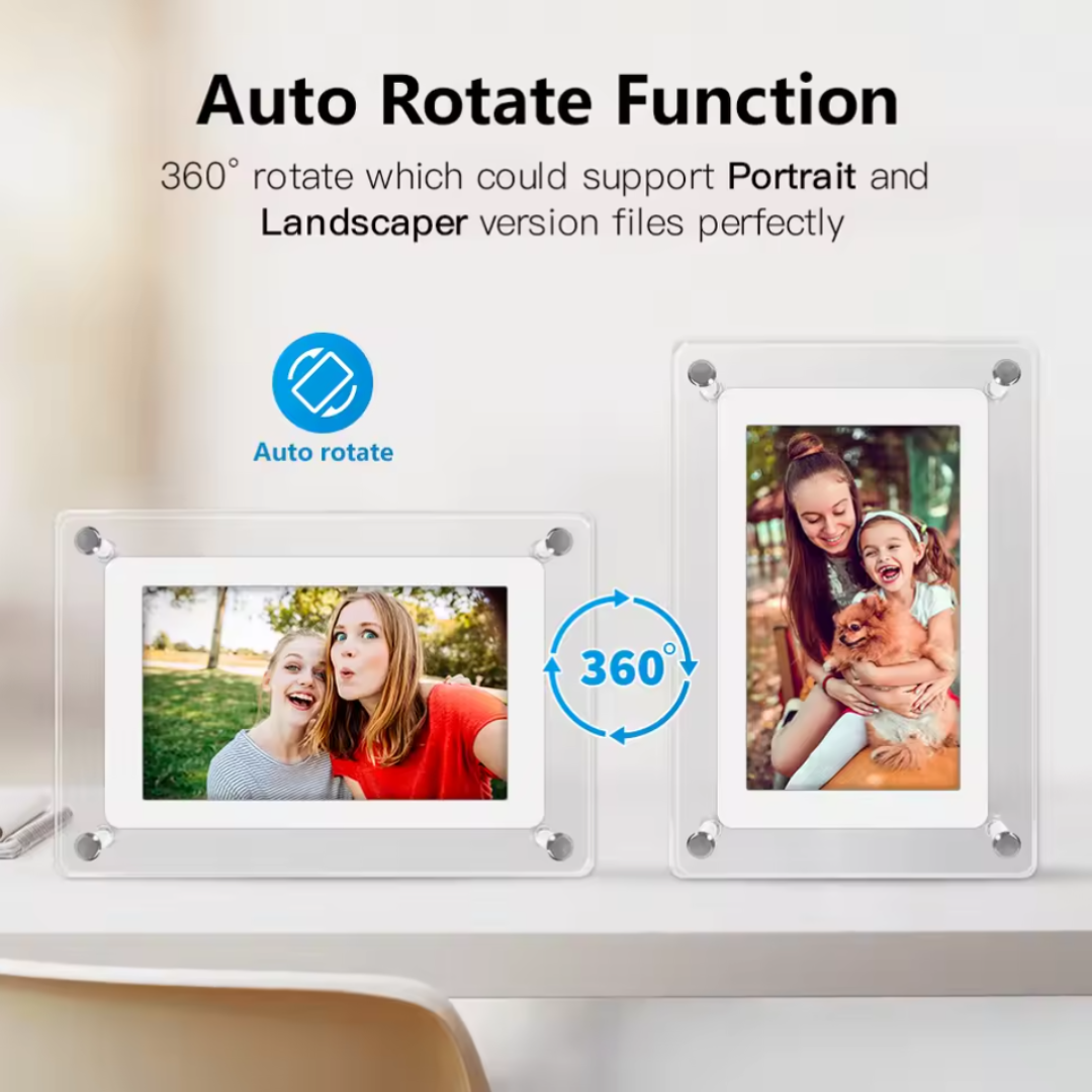 Tanto en vertical como en horizontal, coloca tus recuerdos como más te guste, solo basta con girar el marco con el video o fotos necesarias con sus medidas.